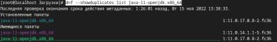 # Смотрим версии приложения dnf --showduplicates list <package> dnf --showduplicates list java-11-openjdk.x86_64