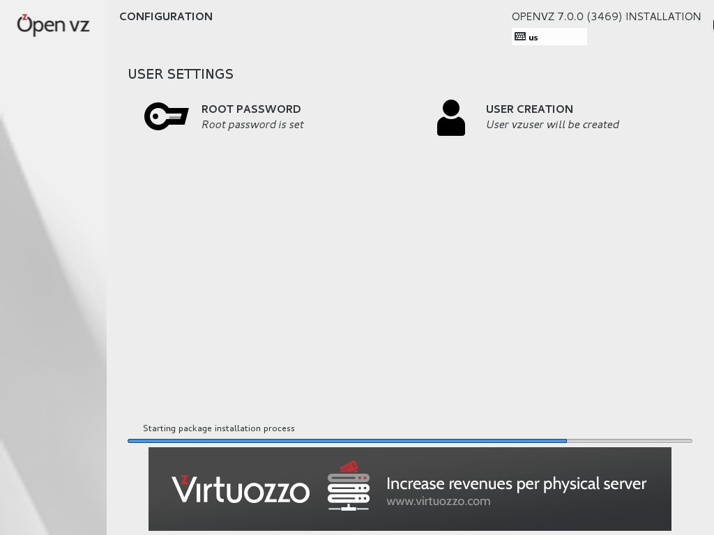 Экран установки OpenVZ после загрузки с носителя