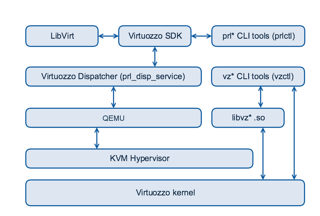 - пользовательские утилиты (prlctl, vzctl, vzpkg, vzlist, ...)