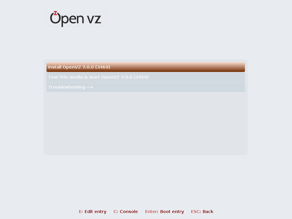 Начиная с версии OpenVZ 7.0 доступен только один вариант установки, с помощью ISO-образа дистрибутива.